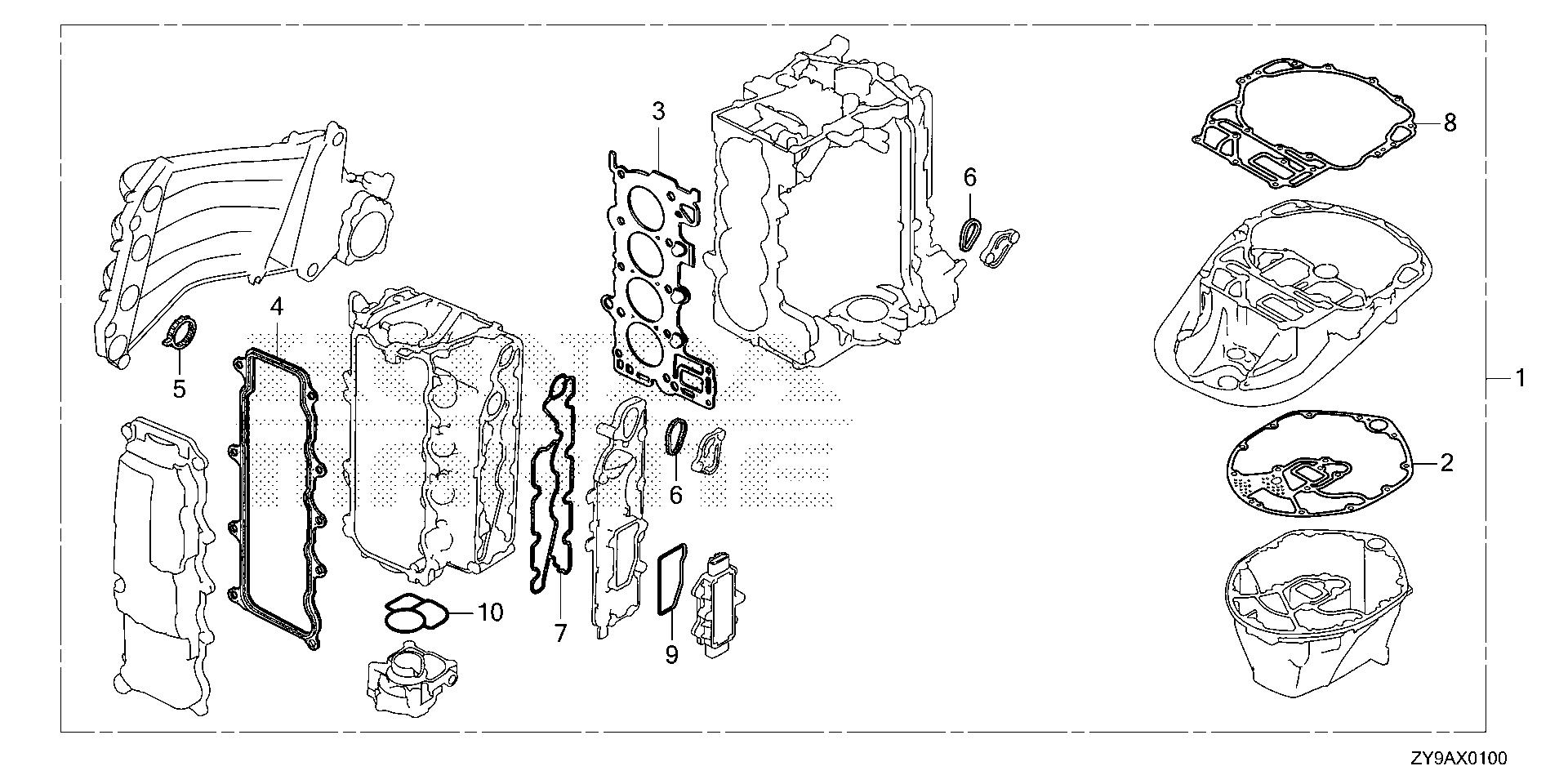 Mid - Large Outboard Engines (25 - 250hp) BF BF90 BF90DK4 JRTA BBCJ-1300001-1399999 GASKET KIT - Alvarado Marine & Power Equipment